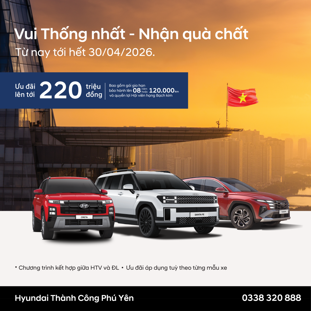 Nhân dịp lễ 30/4, Hyundai Thành Công Phú Yên mang đến chương trình ưu đãi hấp dẫn chưa từng có dành cho khách hàng mua xe: